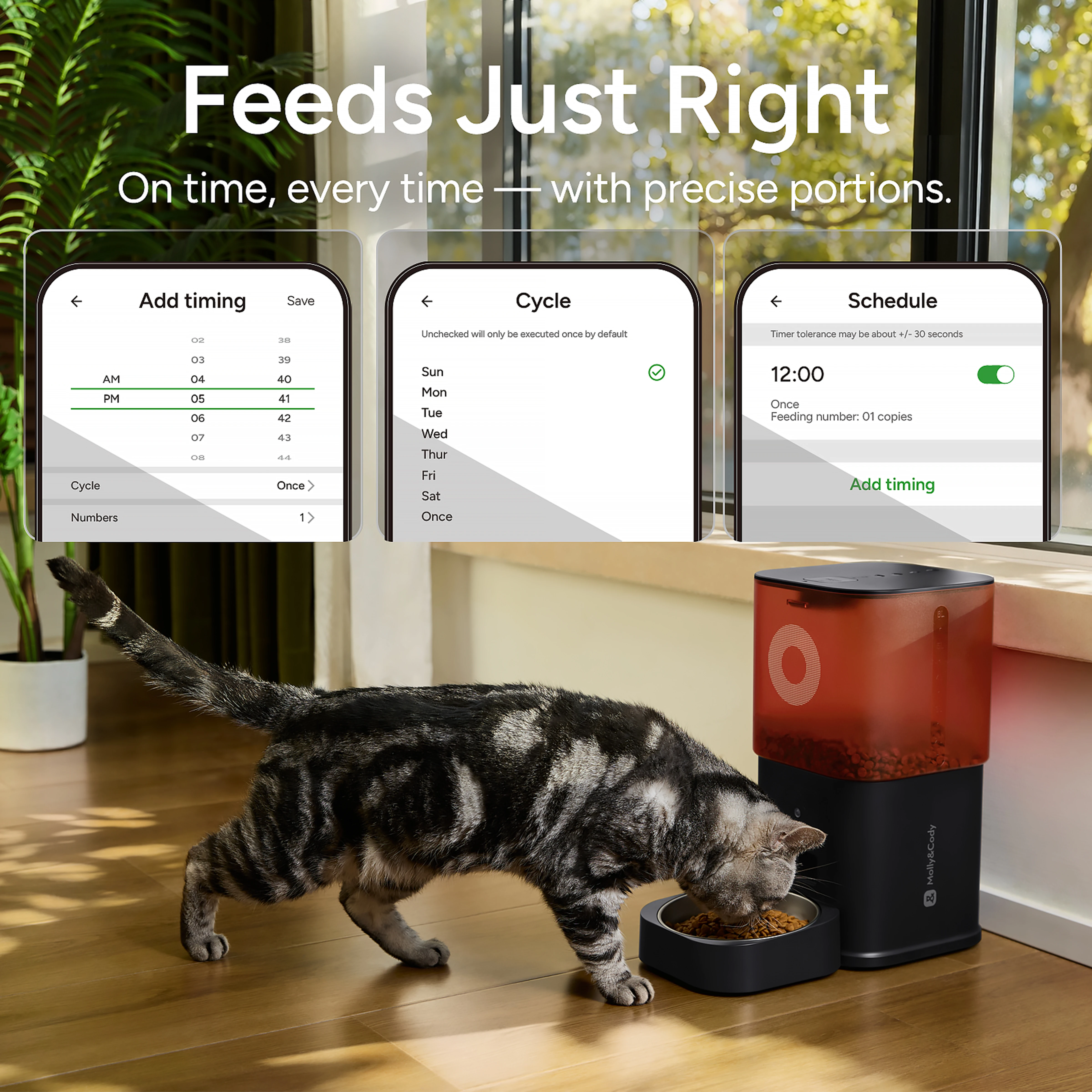 - App Remote Timed Feeding & Real-Time Control: Through the dedicated App, you can set up timed feeding plans remotely, customizing feeding time and portion according to your pet's living habits. You can also check the feeding records in real time to keep track of your pet's eating situation. The simple and easy-to-use App interface makes operation convenient for people of all ages.