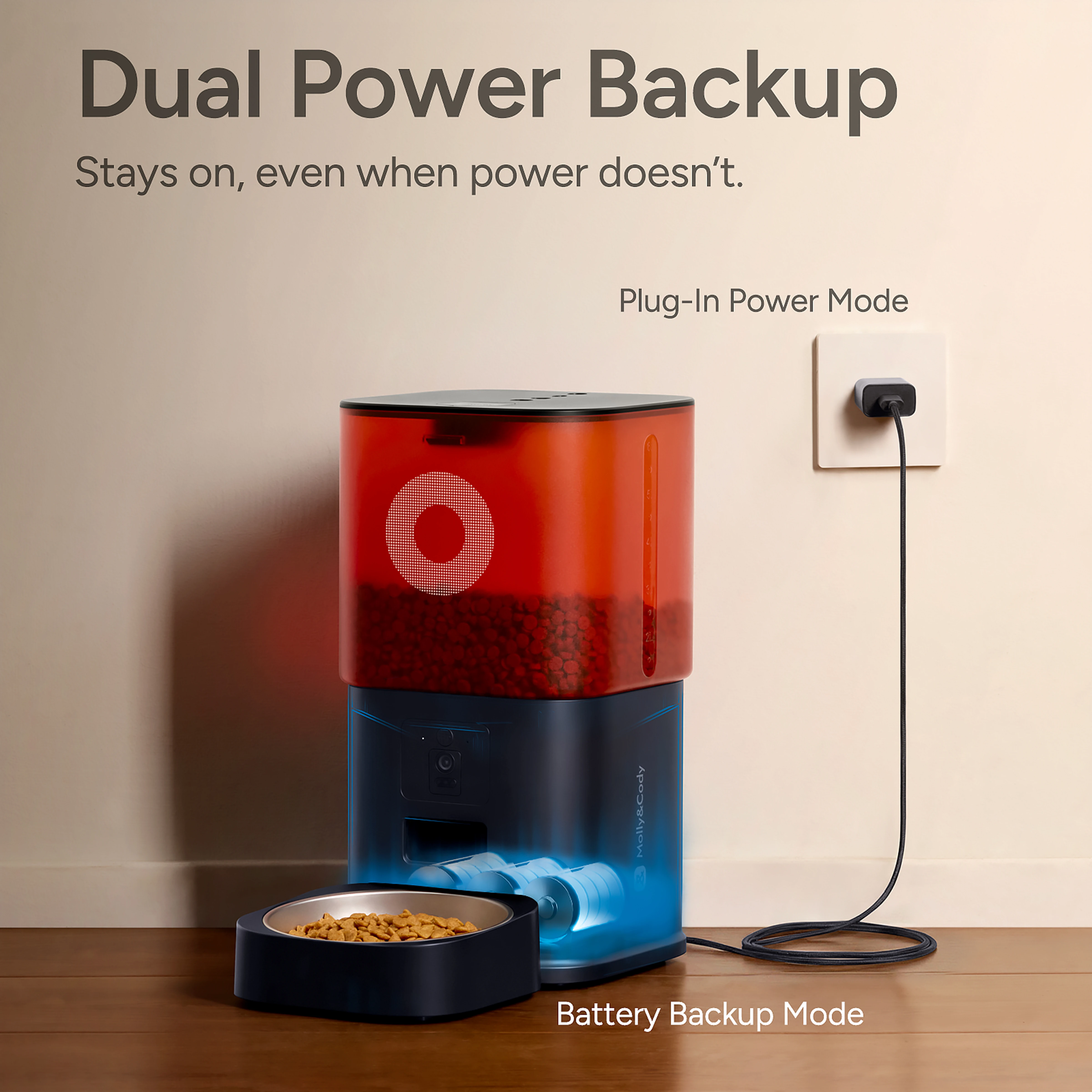 - Dual Power Supply Mode (Long Battery Life): Equipped with D Batteries (Size 1) battery compartment and dual power supply options. When using batteries, it can last for more than 6 months, ensuring stable power supply even in the event of a power outage. You don't have to worry about your pet being unable to eat due to power failure, providing double protection for your pet's diet.