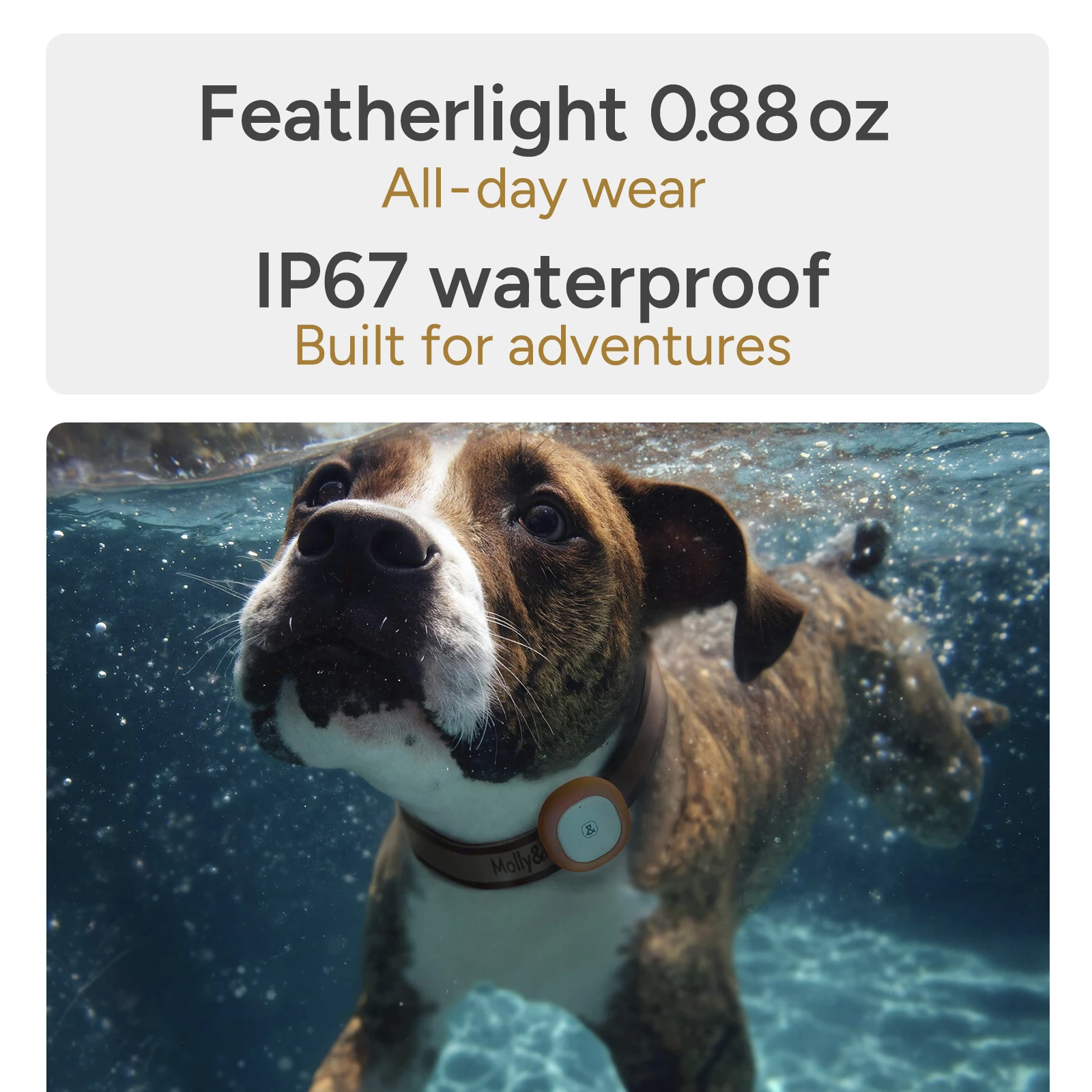 • Lightweight, Waterproof, Adventure‑Ready - 0.88 oz, IP67 waterproof and dustproof; designed for cats, big and small dogs. OTA updates add smarter wellness features over time.